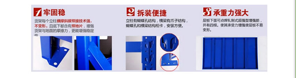 轻型货架是非常经济实用方便的一款仓库货架,因其载重量较轻,故常称为轻型货架。货架是由三种构件:立柱片、横梁、层板组成。轻型货架整体采用无螺钉组合式设计,安装拆卸方便快捷。适合存放一些轻质小件货品,是层板货架的一种。轻型货架的结构与中型相同,可自同拆装,层高以5cm间距可自由调节,只是其材料规格相对较小,承载量也相对较小,此种轻型货架价格相对经济,结构相对万能角钢货架要稳定牢靠,在1500cm跨度内,可承载100-200kg.表面采用喷塑处理,美观整洁。 适用于存放轻中型物品,人工存取的场合。