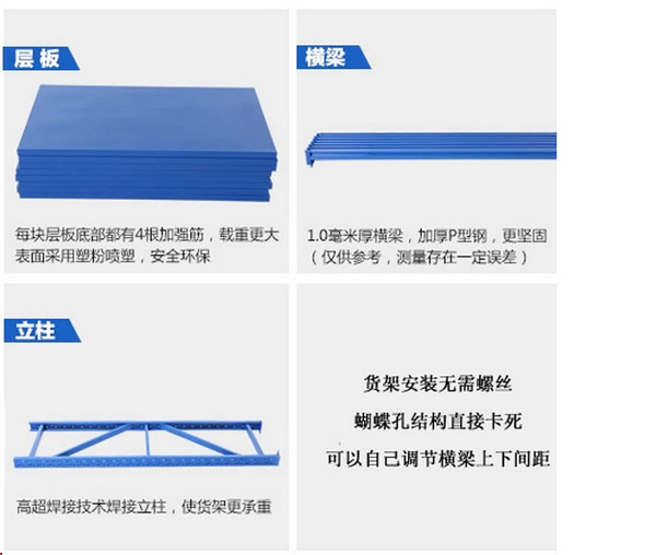 2、货架钢层板:采有冷轧钢板按所需尺寸四边折弯成型。